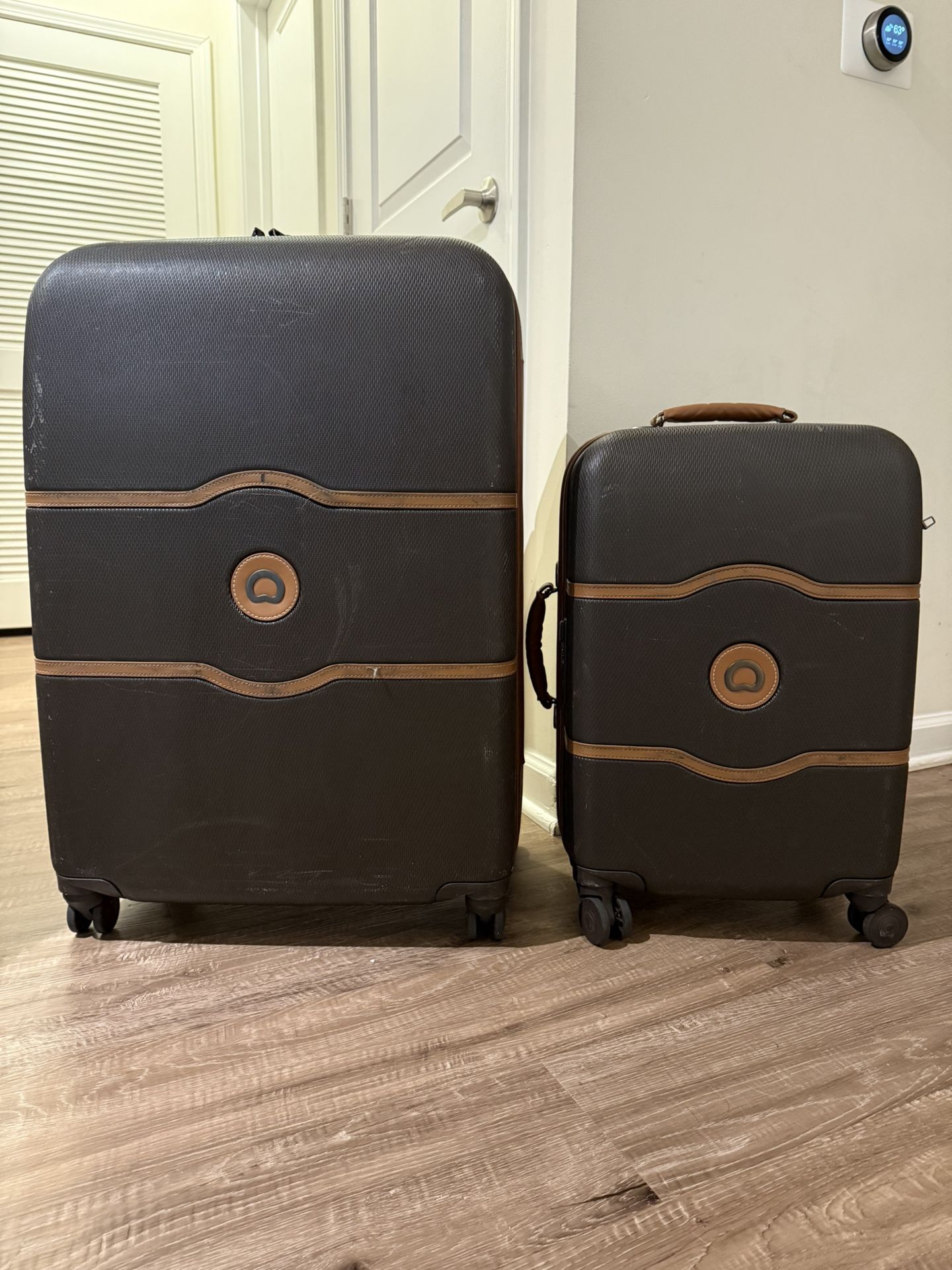 Carry-on Plus Spinner - 21 inch lugagge - $230 New Large Spinner 28 inch lugagge - $290 New Bought in 2018, carry-on used around 10 times and large spinner used around 4 times Selling as a set for $200 (would be $520 new) Both bags have marks from use and only the carryon handle has the grip peeling off. Interiors are in perfect condition. Access the Delsey website for more info: https://offerup.com/redirect/?o=aHR0cHM6Ly91cy5kZWxzZXkuY29tL3Byb2R1Y3RzLzQwMTY3NjgyMS1jaGF0ZWxldC1haXItMjAtMzBpbmNoLWNoZWNrZWQtc3Bpbm5lcg==