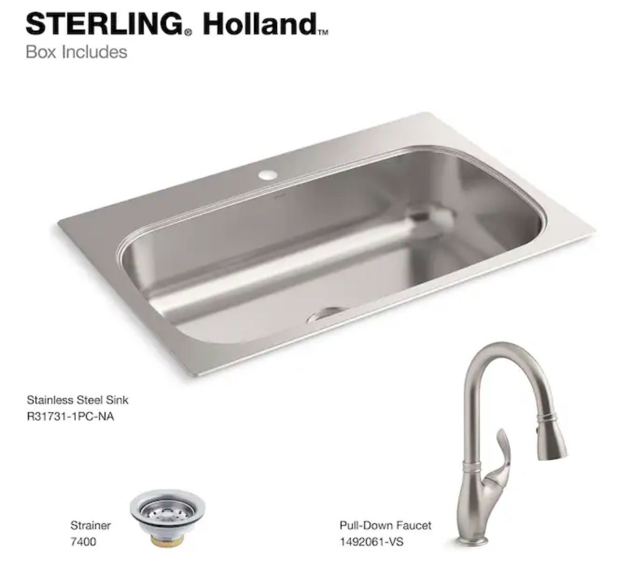 Holland Drop-In 33in x 22in Stainless Steel Single Bowl 1 hole Kitchen Sink All-in-One Kit