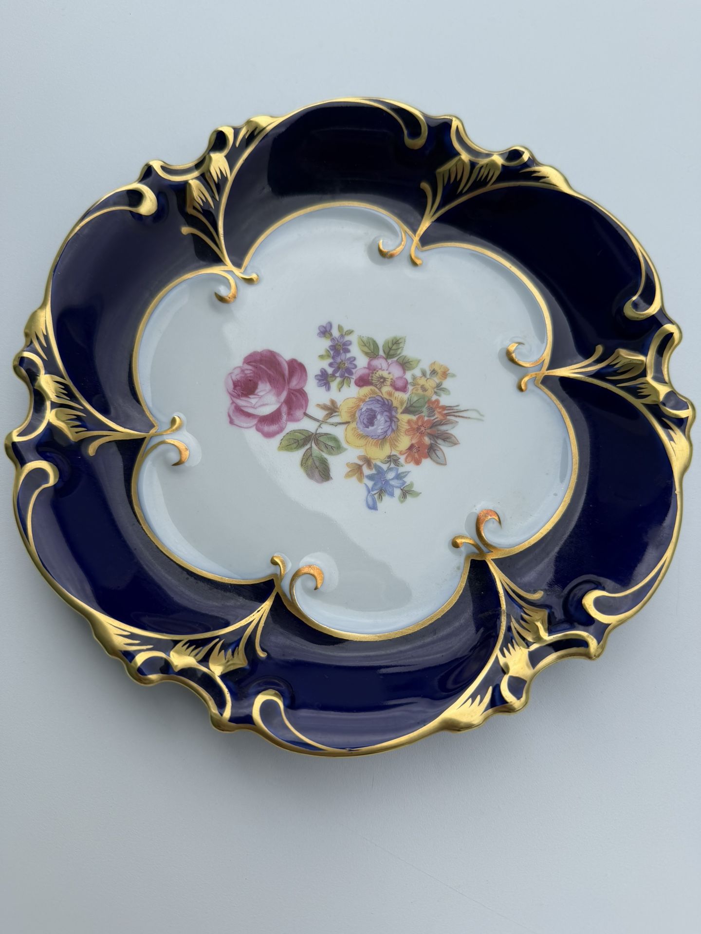 Vintage German Porcelain Plate β JLMENAU Echt Kobalt Cobalt Blue Gold