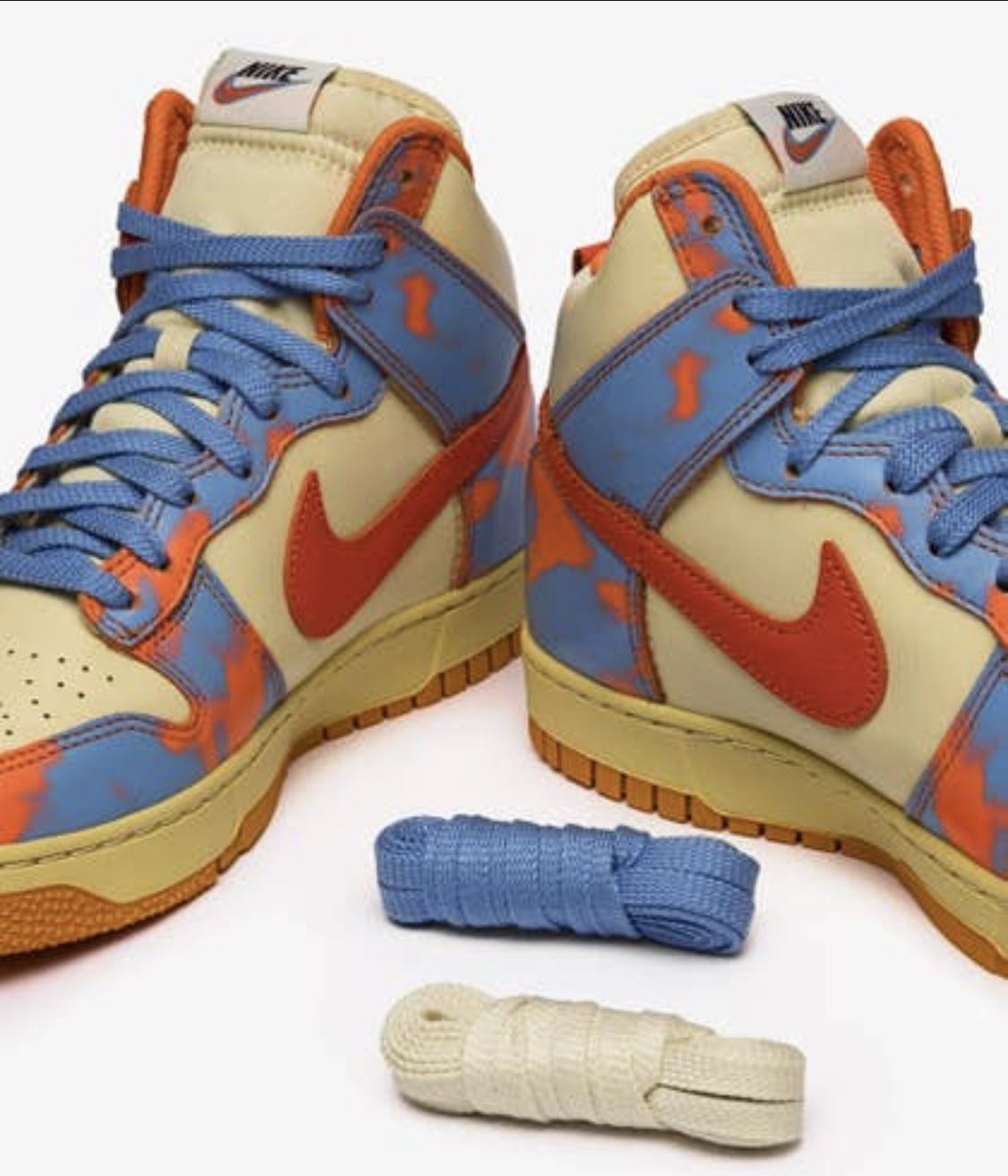 1985 Acid wash Orange and Baby Blue “Cream Sickle” color way. Brand new in box with paper, two laces and OG box. Size is original 85 sizing so true size 7.5-8 in mens. 8.5 fits a bit tight but works. Womens 9.5 fits perfect. Very cool sneakers just a little tight for me.