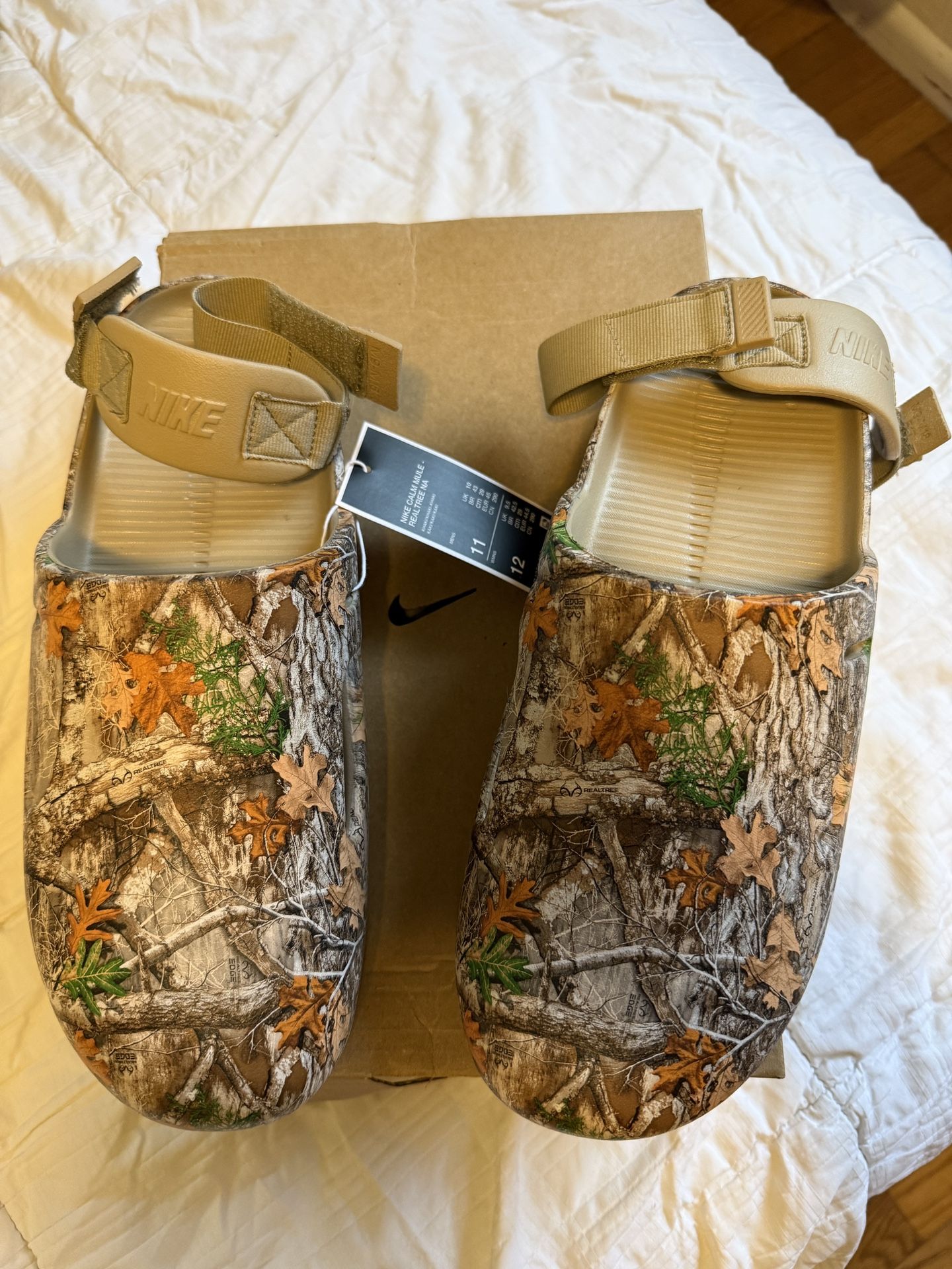 Mens nike crocs clog style. The buckles on the back do velcro on and off brand new never worn my husband bought them online and said he would wear them and never did and its way to late to return them. 50$ or best offer the box is also in good condition for a gift!