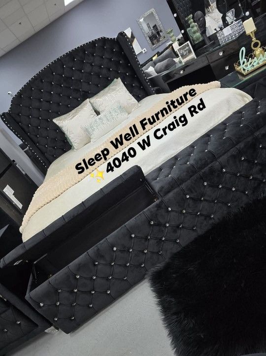 HUGE SALE!!!!!!! Elegant cal king, King, Queen Bed Frame with built-in storage spaces Starting 👉👉$799 Available cal King Black or grey 🙋♂️👉SLEEP WELL FURNITURE 4040 W CRAIG RD LAS VEGAS Open 10-7pm Hablamos Español 👉We offer Financing💲 Take home it Home 👉$50 DOWN No credit required, Zero interest up to 120 days Select from Koalofi, Acima, American First, Progressive finance Furniture Sectional Sofa Queen King Mattress Bedroom Bunk beds Dining table sets