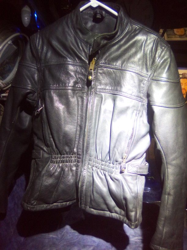 Women's biker jacket black leather excellent condition size medium bikers club brand
