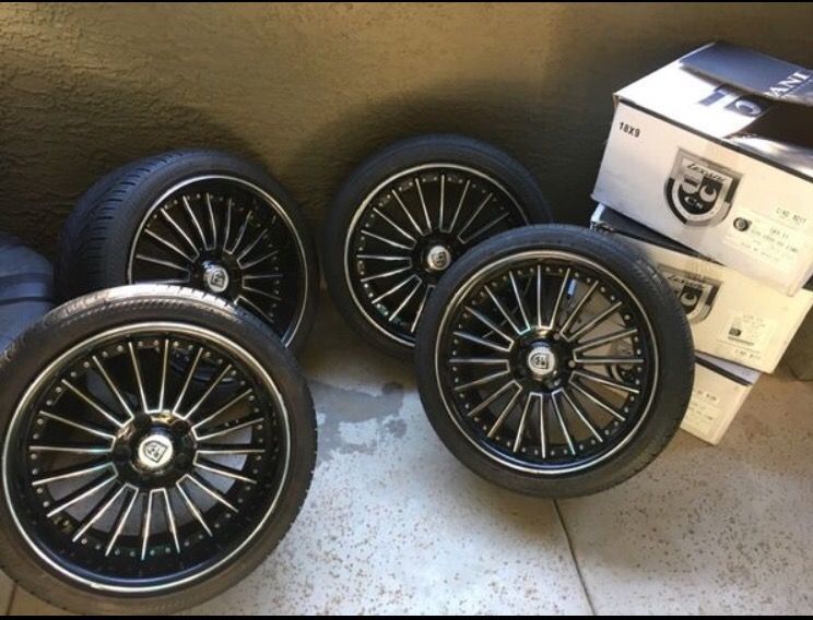 Willing to sell for $700 if you can pick up this weekend! Set of four wheels and tires. Lexani LSS-11 18". The wheel measurements are: 2 - Lexani LSS-11: 18x8, 5x120 bolt pattern, +35mm offset, Machined Black with Black Grooved Lip 2 - Lexani LSS-11: 18x9, 5x120 bolt pattern, +35mm offset, Machined Black with Black Grooved Lip. Don't like the price? Make an offer?