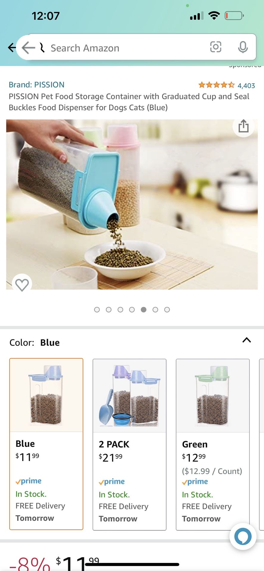 PISSION Pet Food Storage Container with Graduated Cup and Seal Buckles Food Dispenser for Dogs Cats (Blue)