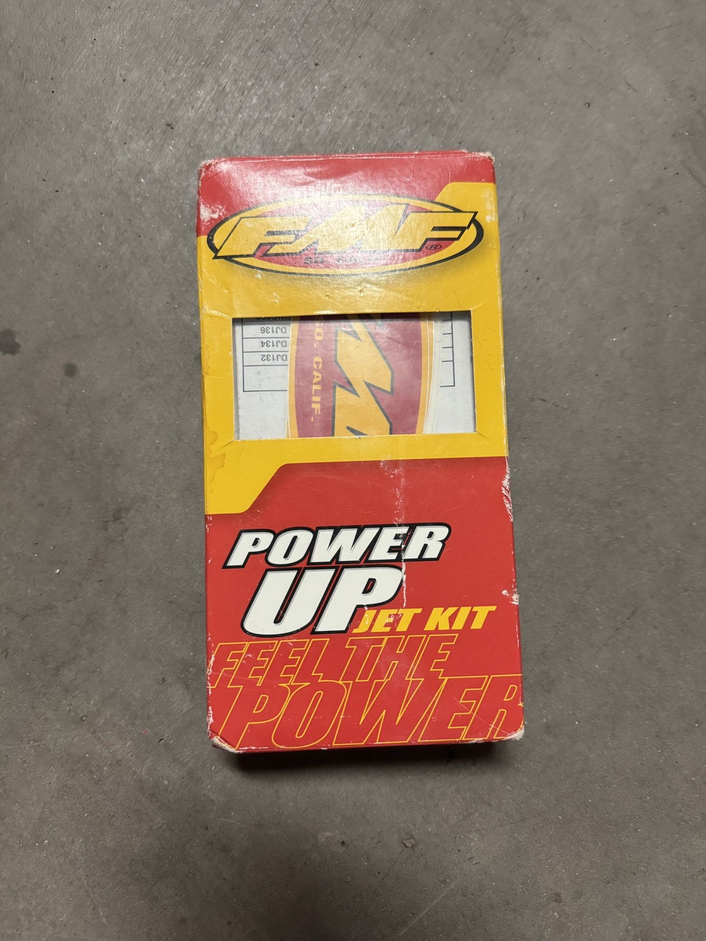 FMF Power-Up Jet Kit (Part #011716) for Suzuki DRZ400S, years 2000–2013. Box has wear but kit appears complete with original components and paperwork. Great for improving throttle response and tuning when paired with FMF exhaust systems.