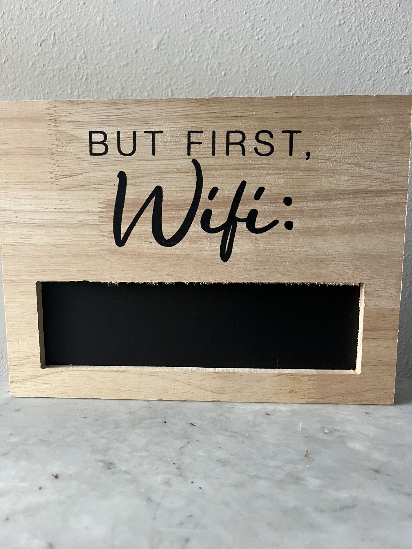 Tired of everyone asking for your WiFi password? Share it in style! Selling this practical and decorative wooden sign with a built-in chalkboard. • Condition: Excellent / Like New. • Design: Light wood finish with modern typography and a chalkboard section to easily write (and update) your password. • Perfect for: Living room, home office, Airbnb, or guest room.
