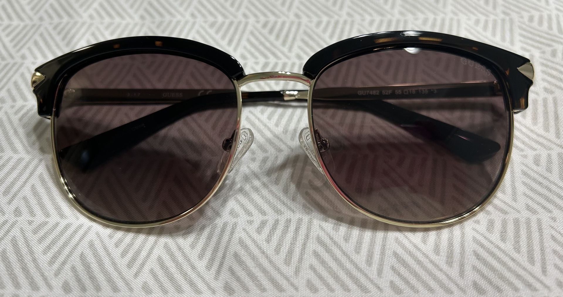 Comes with red Guess Case and lens cleaning cloth. For Women New Sunglasses In New Condition. Color: Tortoise Brown/Gold Size: 55-18-135