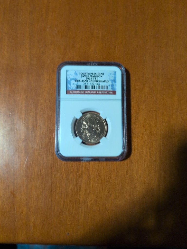 Numismatic Guaranty Corporation Brilliant Uncirculated Rated Fourth President James Madison 2007 $1 Coin