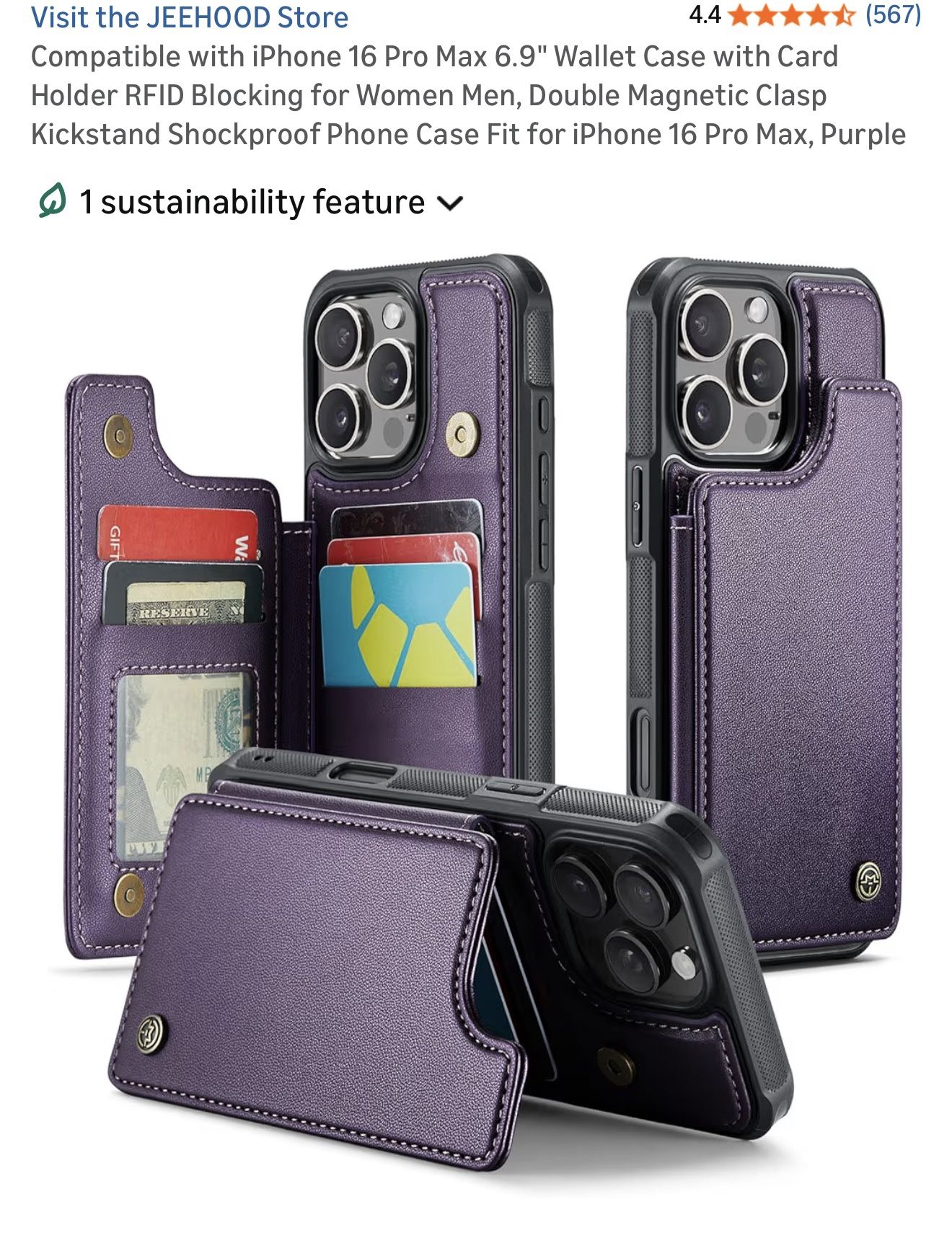 For - iPhone 16 pro max phone case/wallet - PURPLE Comes with FINGER RING HOLDER Originally $30 Stylish and functional purple wallet case for your smartphone. Keep your cards and cash secure while protecting your device.