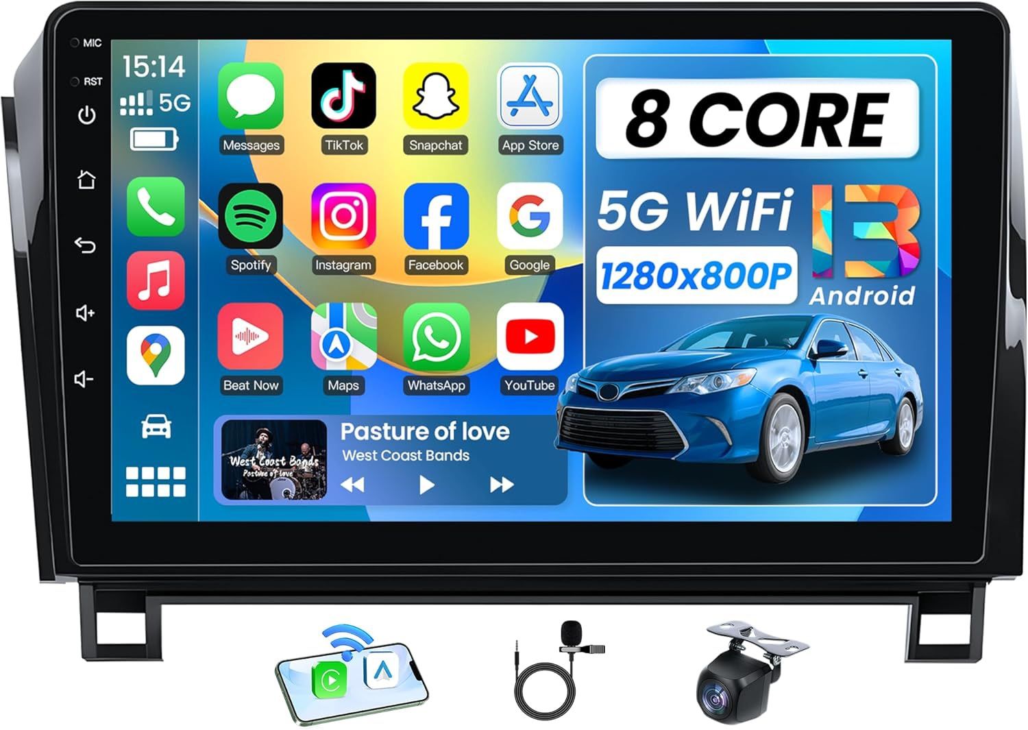 10.2 Inch HD Touchscreen Toyota Stereo Support Wireless Carplay Android Auto Bluetooth 5G Wi-Fi FM GPS SWC DSP Mirror Link Backup Camera.. About this item 【Vehicle Fit & Plug-and-Play Upgrade】 Designed specifically for Toyota Tundra 2007–2013, this 10.2-inch radio stereo replacement offers true plug-and-play installation with all required harnesses included—no cutting or rewiring needed. Fully supports factory steering wheel controls, JBL amplifier, reverse camera, parking radar, A/C information, TPMS display, and OEM USB port, delivering a seamless OEM-style upgrade that fits perfectly and refreshes your interior. 【Wireless CarPlay & Android Auto】 This Toyota Tundra radio upgrade supports wireless CarPlay and wireless Android Auto, as well as wired USB connection. Enjoy fast, stable connection in about 1 second for navigation, music, calls, and apps directly on the touchscreen. Mirror your phone interface smoothly and access apps hands-free, making daily driving safer and more convenient. 【Android 13 System & Stable Performance】 Powered by Android 13, this car stereo features an 8-core processor with 2GB RAM + 32GB ROM, ensuring smooth operation and responsive performance for everyday use. Built-in WiFi hotspot support allows easy access to online navigation apps, streaming, and downloads from the Play Store. Supports Bluetooth 5.0, SWC, mirror link, FM, RDS, and DSP. 【DSP Audio & AM/FM Radio】 Equipped with DSP sound processing, 36-band EQ, and RDS, this Toyota Tundra head unit enhances audio clarity and balance for a richer listening experience. The high-quality AM/FM radio tuner delivers stable signal reception, so you can enjoy music, talk shows, and local stations with consistent sound quality on every drive. 【Built-in GPS Navigation & Steering Wheel Control】 The integrated GPS module supports both online and offline navigation, providing accurate and reliable route guidance wherever you drive. Full steering wheel control compatibility lets you adjust volume, change tracks, and answer calls without taking your hands off the wheel, improving driving safety and control. 【HD Rear View Camera Support】 Includes a 1080P night vision rear camera with IP67 waterproof rating and automatic fill light for dark environments. When shifting into reverse, the radio instantly displays the camera view with clear distance guidelines, helping you park and maneuver safely in tight spaces or low-light conditions.