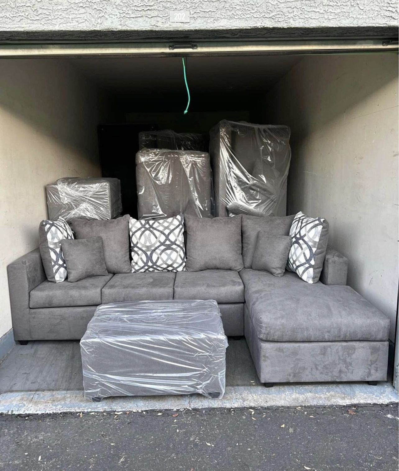 ๐ Free Delivery Brand New Factory Sale Grey L Shape Couch Ottoman Free