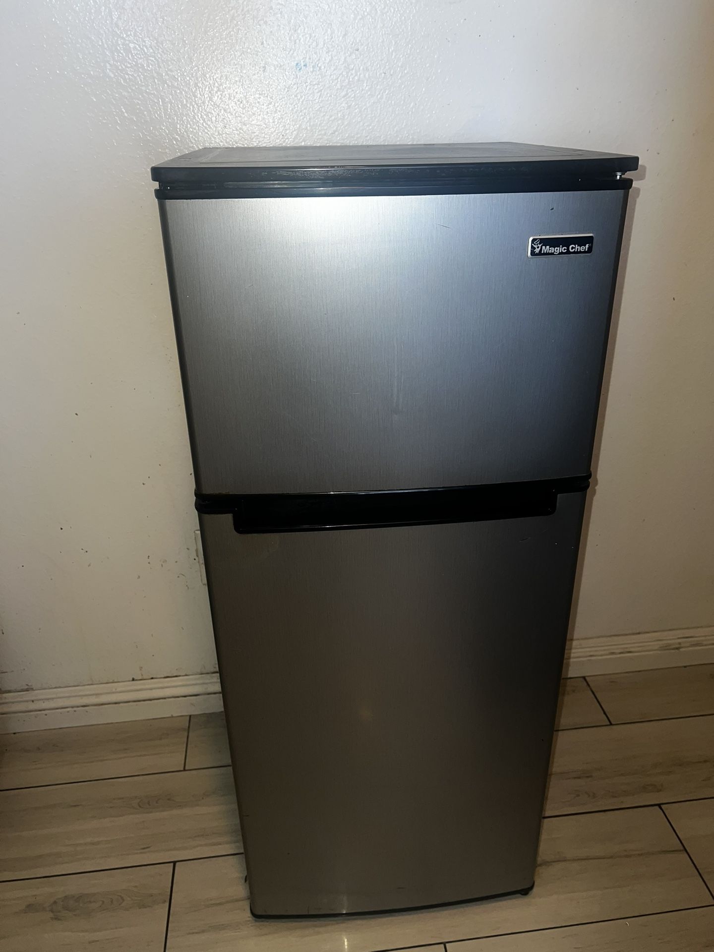 The two-door refrigerator works well; it has some cracks, but nothing that affects its use.
