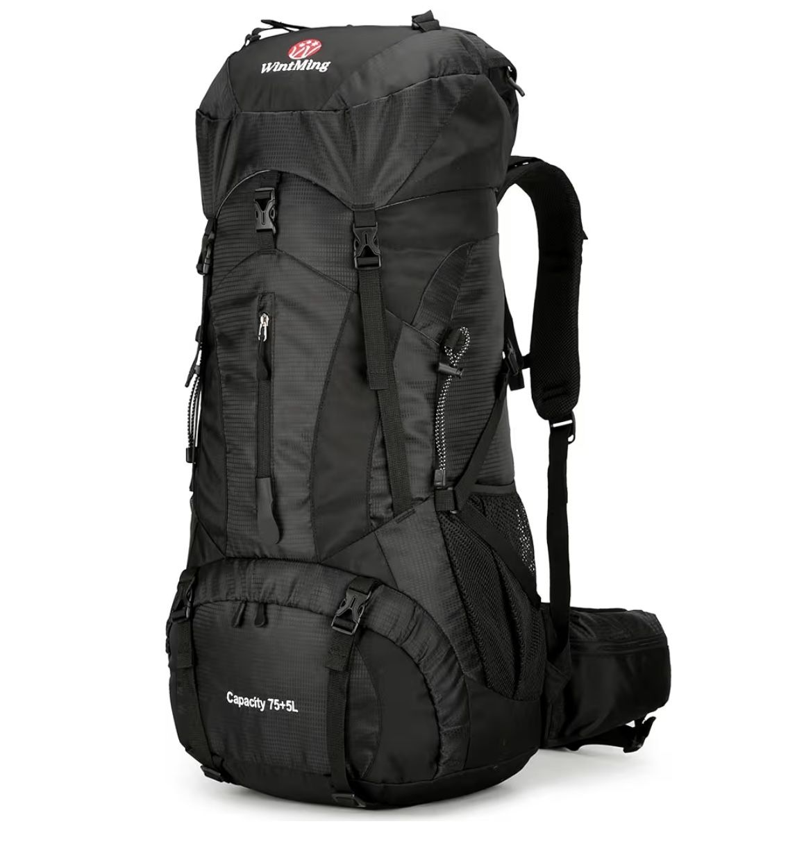 75L+5 Hiking Backpack with Rain Cover Waterproof Camping Backpack (black)