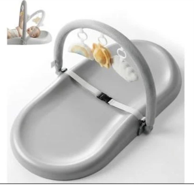 NEW Wipe Clean Baby Changing Pad Waterproof Non Slip with Safety Belt and Hanging Toys New, Open Box
