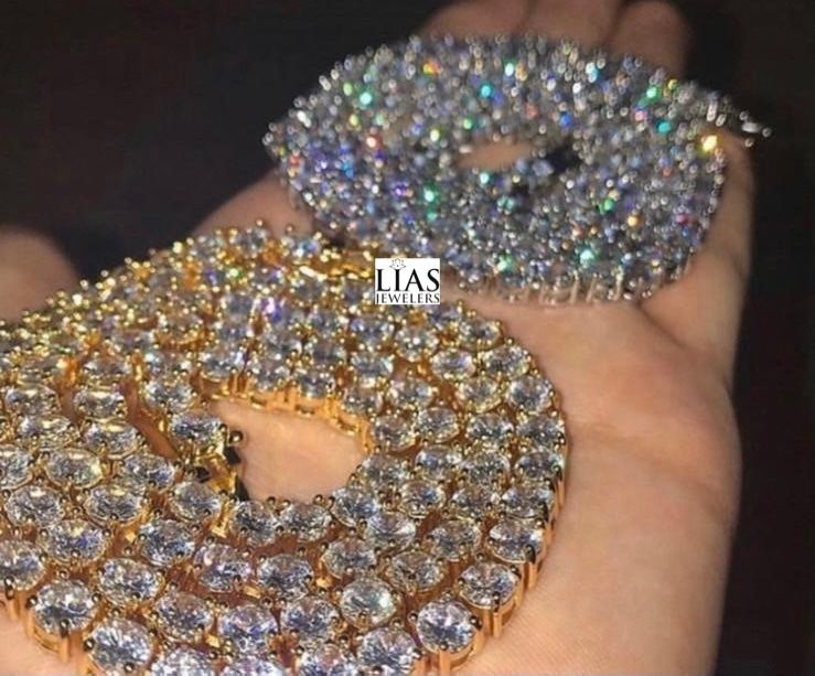 Brand new 18 k yellow or white gold filled with lab created diamonds tennis necklace Available in most sizes! Also have men’s jewelry Cuban link set men’s necklace chain bracelet Miami Cuban link tennis link set Figaro chain set