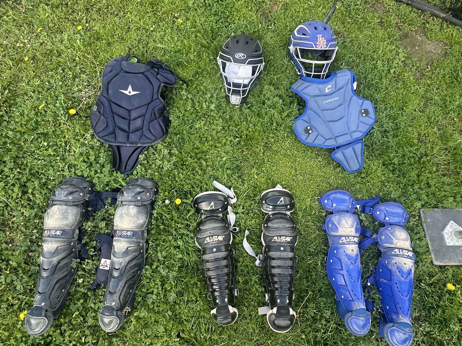 3 sets plus the black helmet is new. These are kid, youth, boys sizes 7u-12u (navy s7). Looking to sell or trade.
