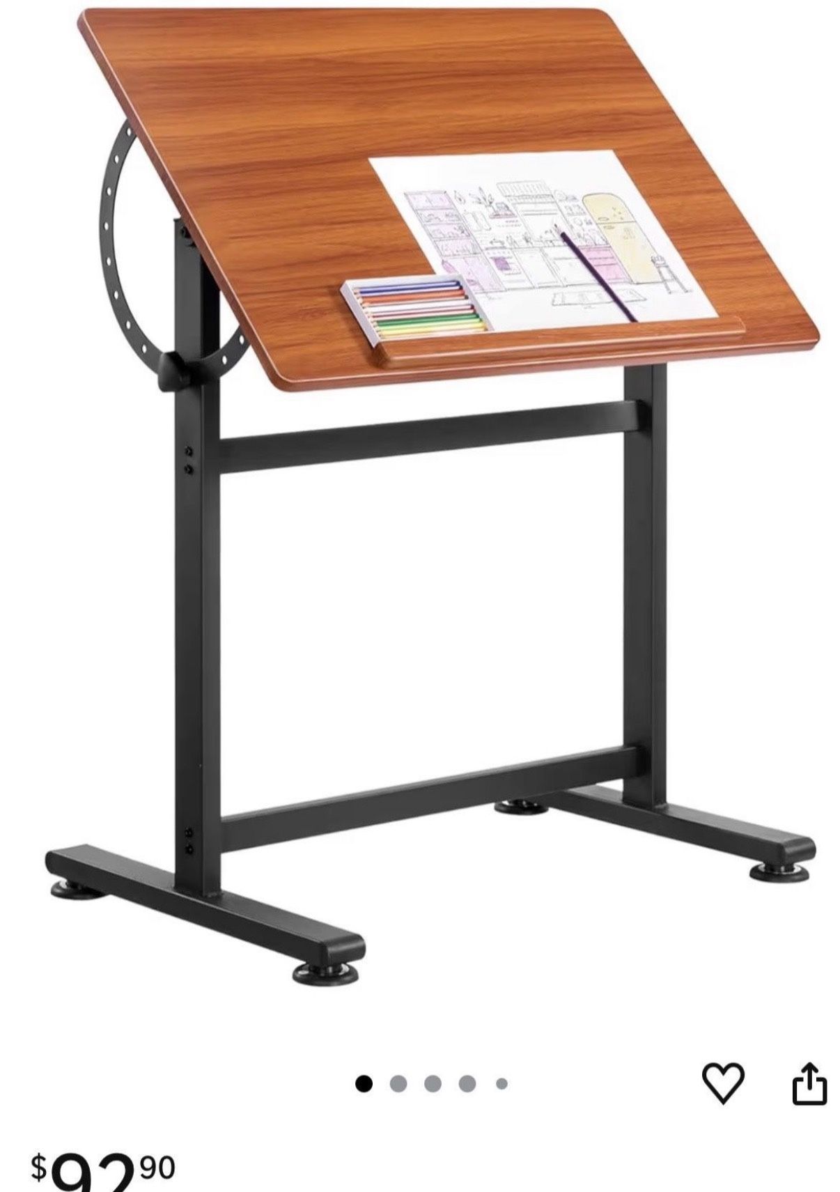 Portable Artist Table with Black H-Frame and Brown Desktop