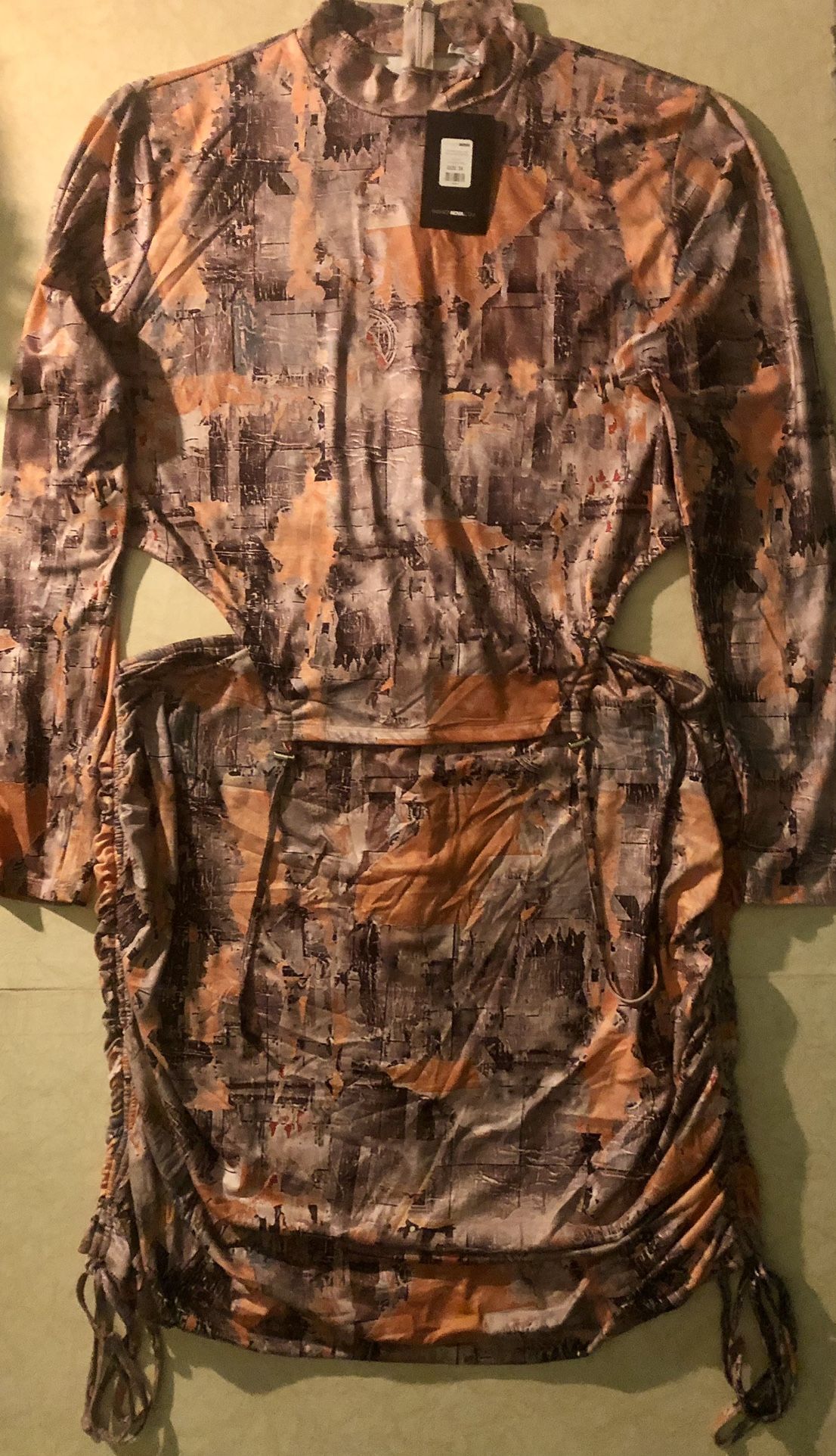 Set Details: • Ruched skirt set/ long sleeve • Adjustable front ruching •Adjustable side ties • Cropped • Mock nock • Invisible back zipper • Mini skirt • Lined. • Stretch • Self: 95% Polyester • 5% Spandex • Lining: 100% Polyester • Imported Beautiful & sexy outfit Runs true to size