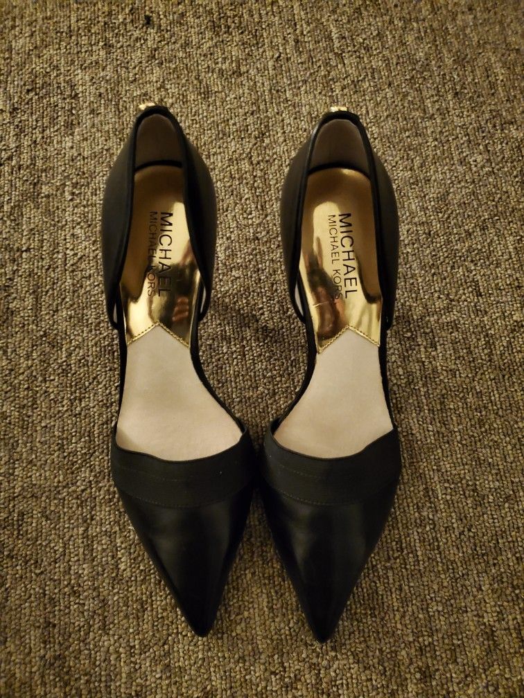 Michael kors pointy toe heels with gold accents