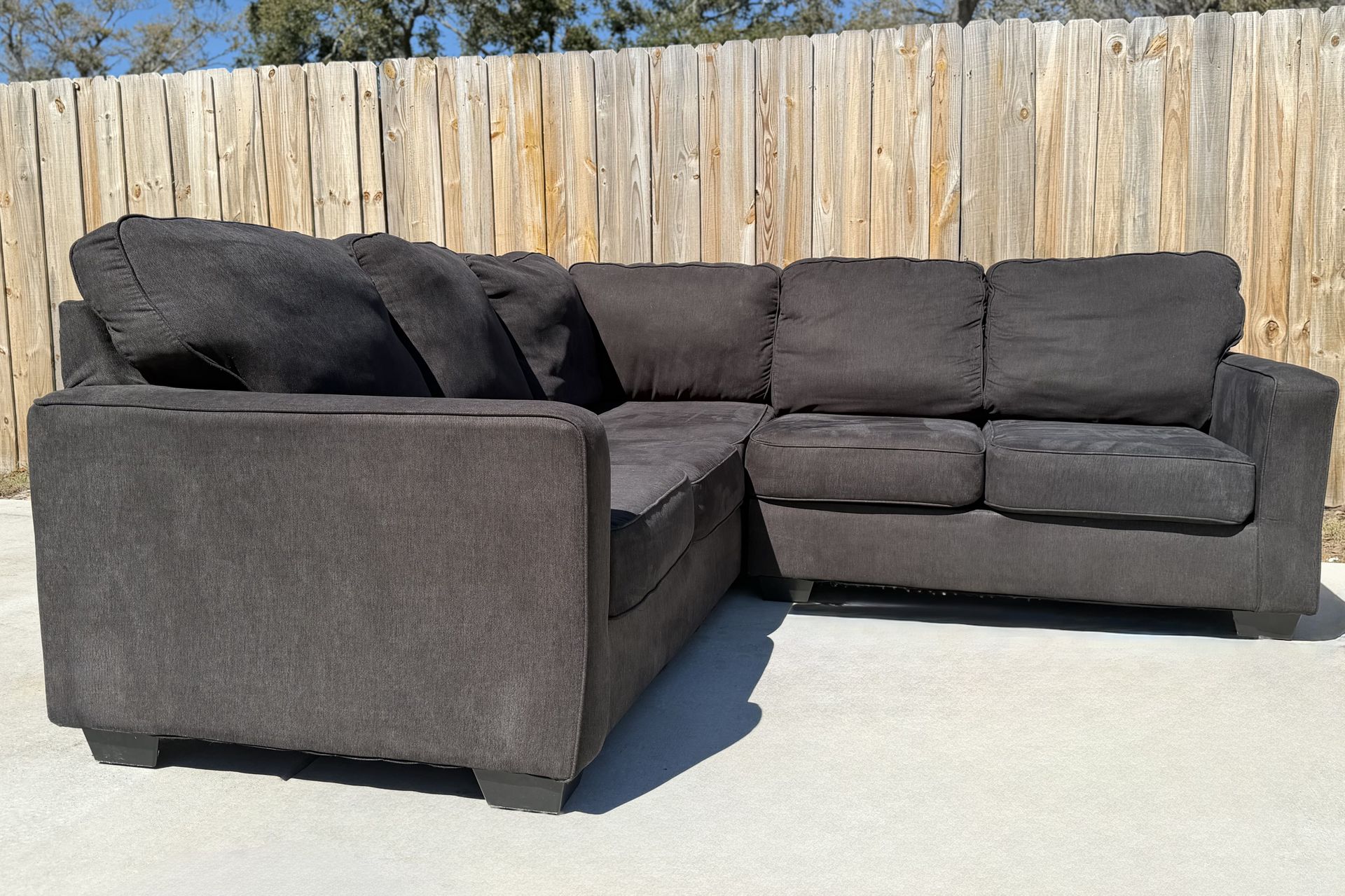 Ashley “Alenya” charcoal 2-piece sectional (LAF) — super comfortable, deep seats, great for apartments/living rooms. Clean overall and ready to go. ✅ Good used condition ✅ No structural issues / cushions supportive ✅ Includes BOTH pieces (as pictured) 🚚 Delivery available (message your ZIP for a quote) 📍 St. Petersburg — ready now Dimensions • Overall sectional: 90” W x 91.5” D x 38.5” H 💰 $499 (priced to move fast) First serious buyer takes it — message me your ZIP + pickup/delivery time.