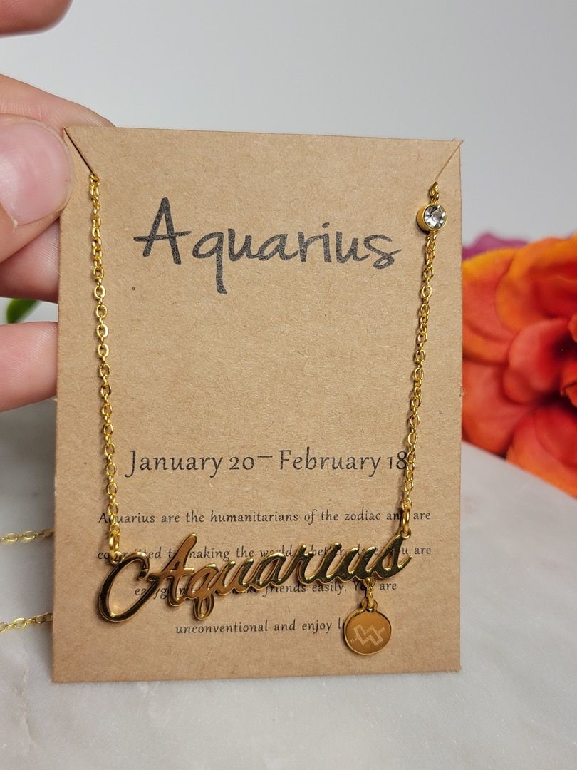 12 Constellation Zodiac Old English Letter Sign Pendant Necklace, Aquarius