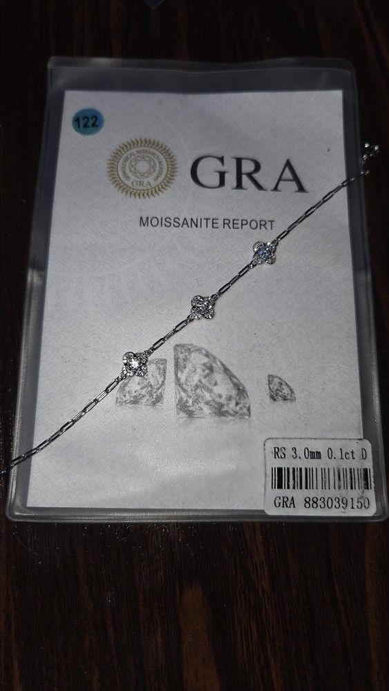 Brand new 6"-8" adjustable clover π Moissanite sterling silver bracelet with certificate