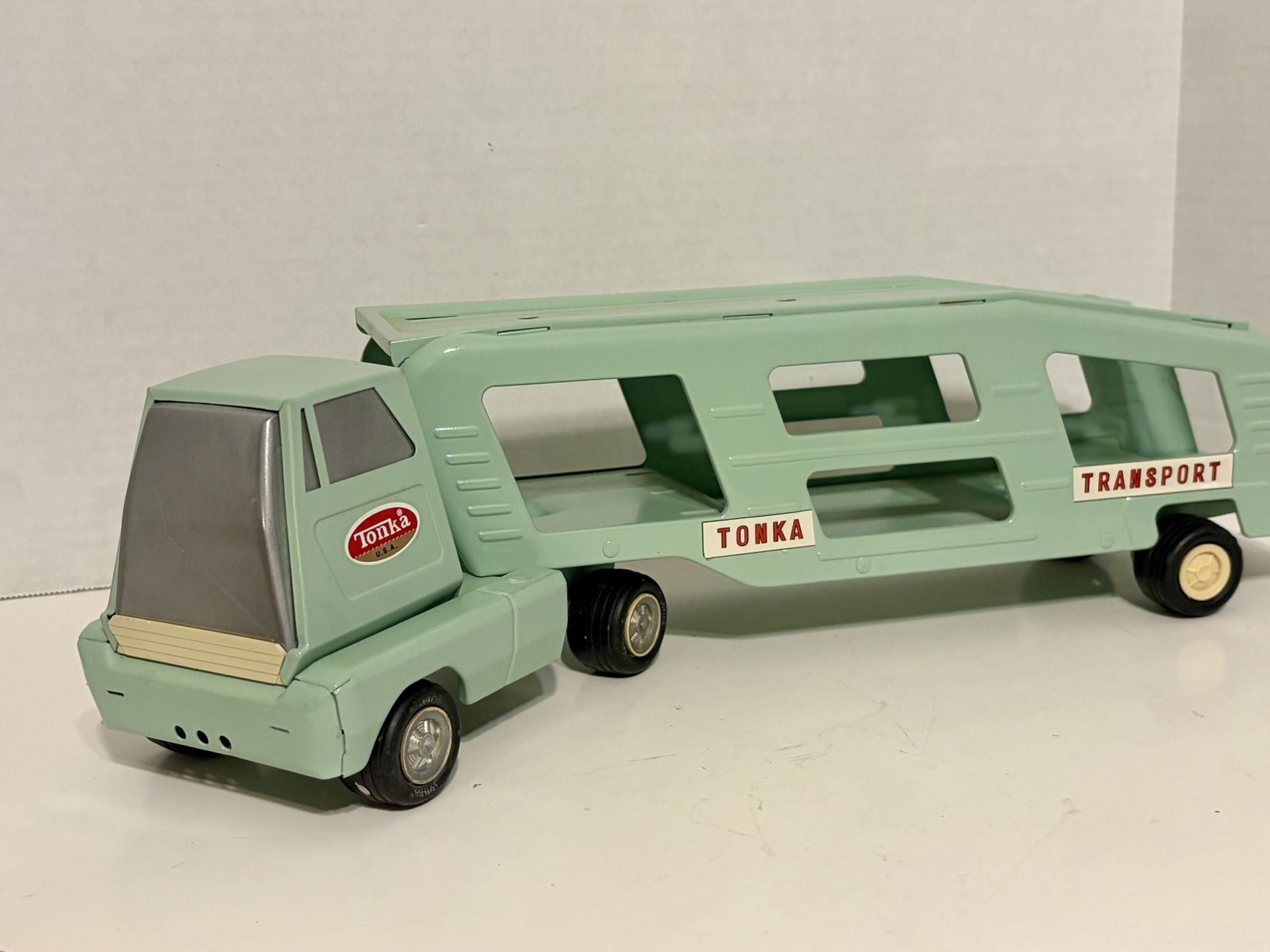 Vintage 18" TONKA Car Hauler Carrier -- Green Pressed Steel repainted