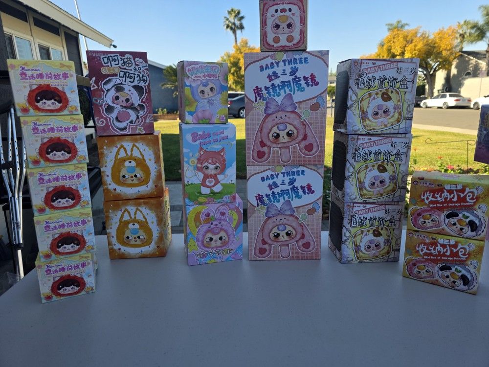 I have BABYTHREE BLIND PLUSH BOXES FOR SALE DIFFERENT PRICES. OR TAKE THEM ALL. MAKE OFFER