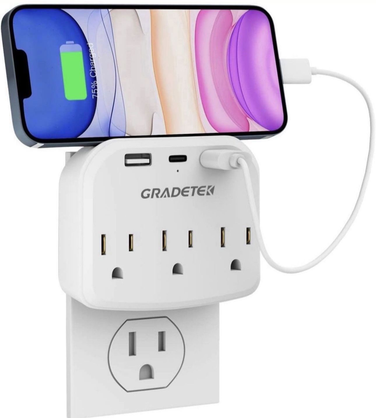 Multi Plug Outlet,6-Outlet Wall Outlet Extender with 3 AC,1 USB C Power Strip for iPad Pro&2 USB A Outlet Splitter for iPhone,Wall Mount Adapter with Top Phone Holder for Home, School, Office, Hotel
