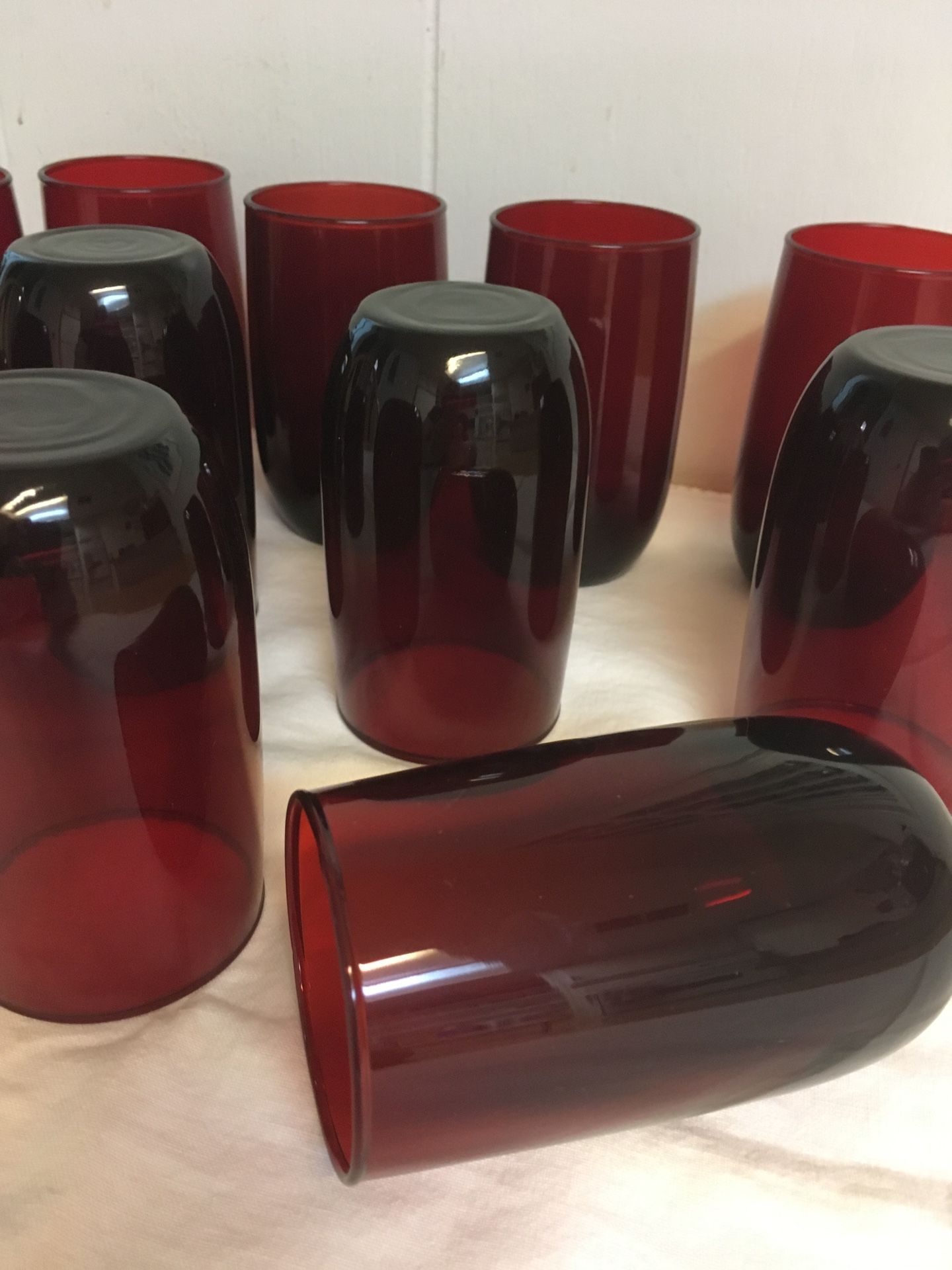 Vintage Ruby Red Tumblers, Glasses Set Of 12