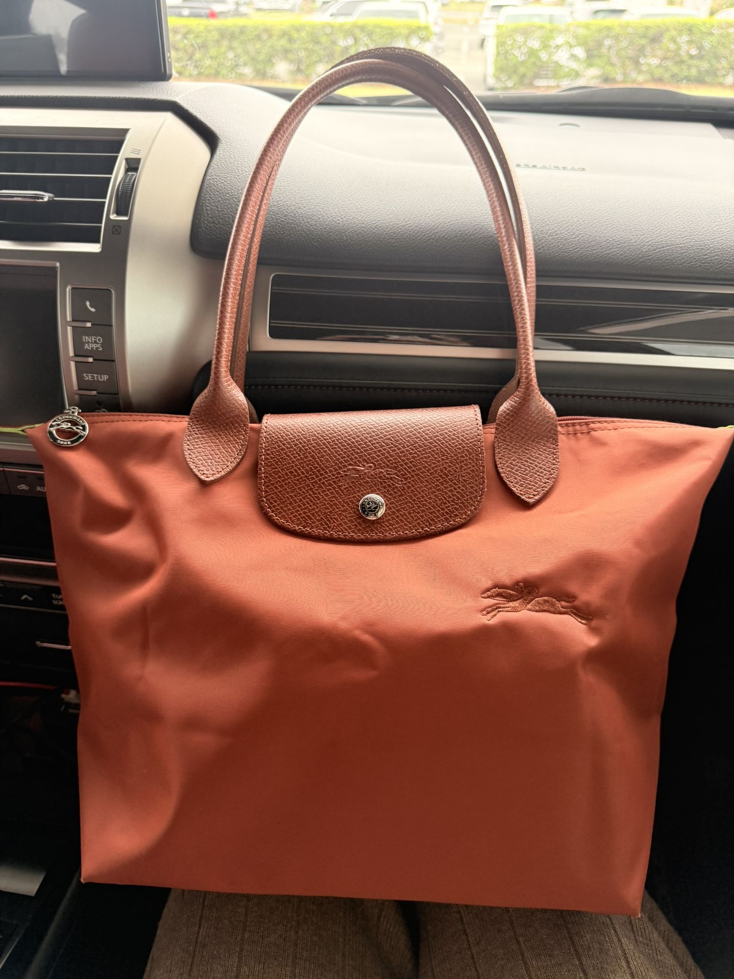 Longchamp authentic shoulder bag in medium size. The color is rust and made in France.