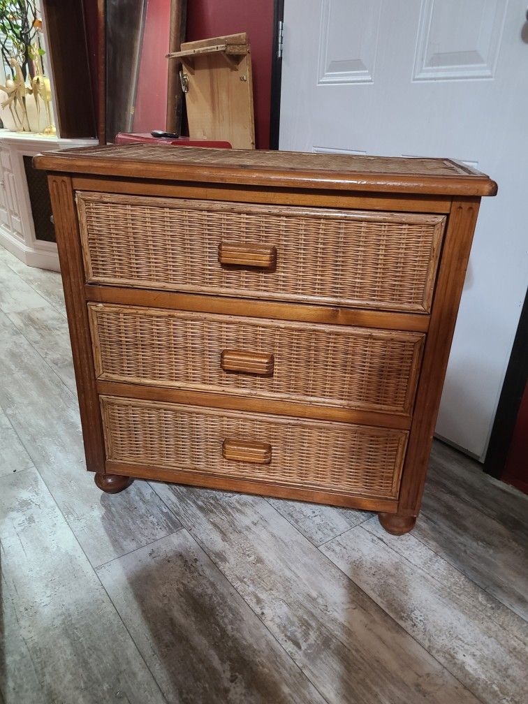 Beautiful bohemian dresser (Boho) really good condition, 3 drawers, round feet, measures 31" long X 18" wide X 30" tall, drawers open and close smoothly no issues, CASH ONLY-NO CASH APPS