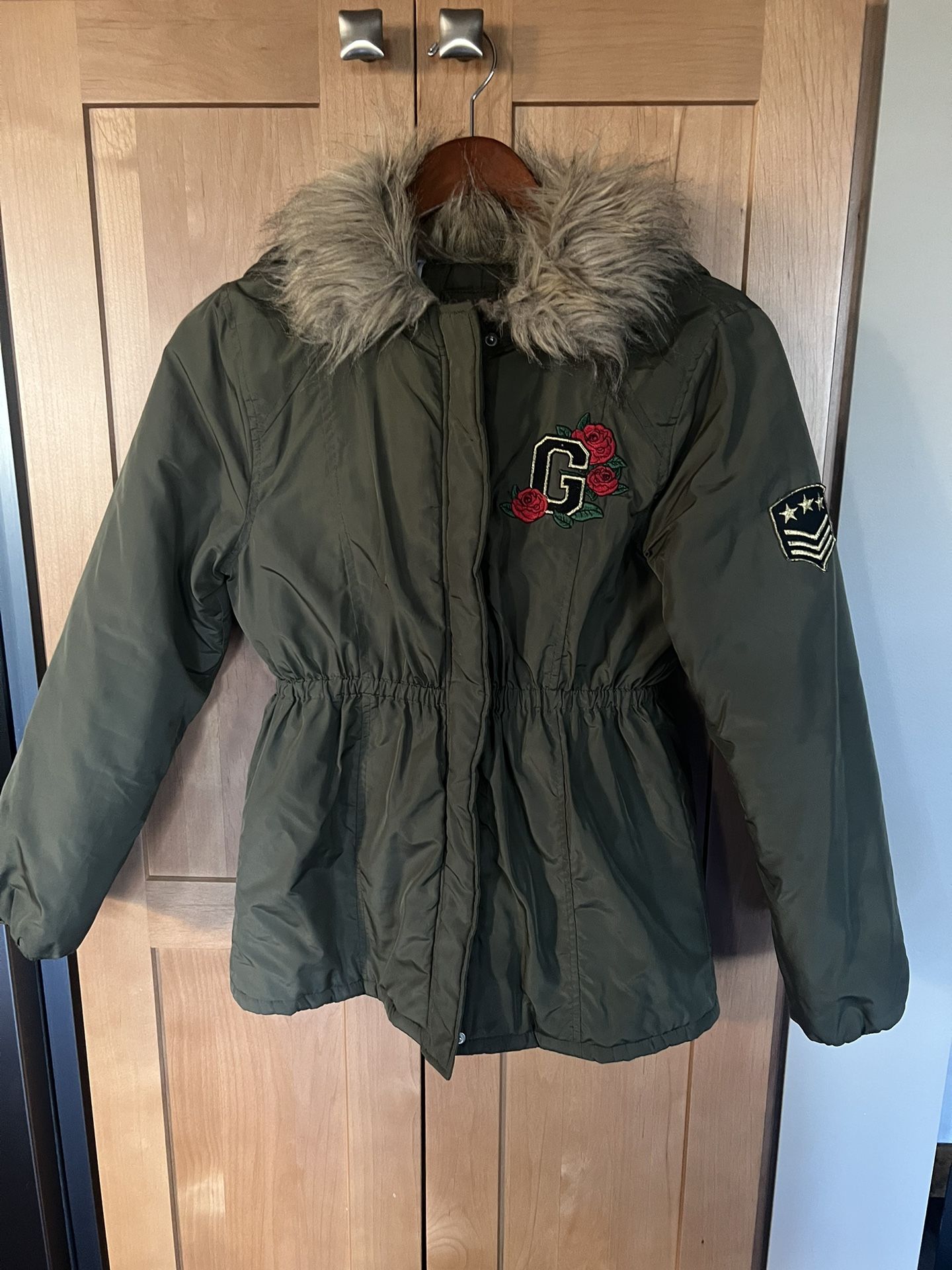 EUC girls Guess jacket with hood. Olive color (size xl) 16 No rips or tears