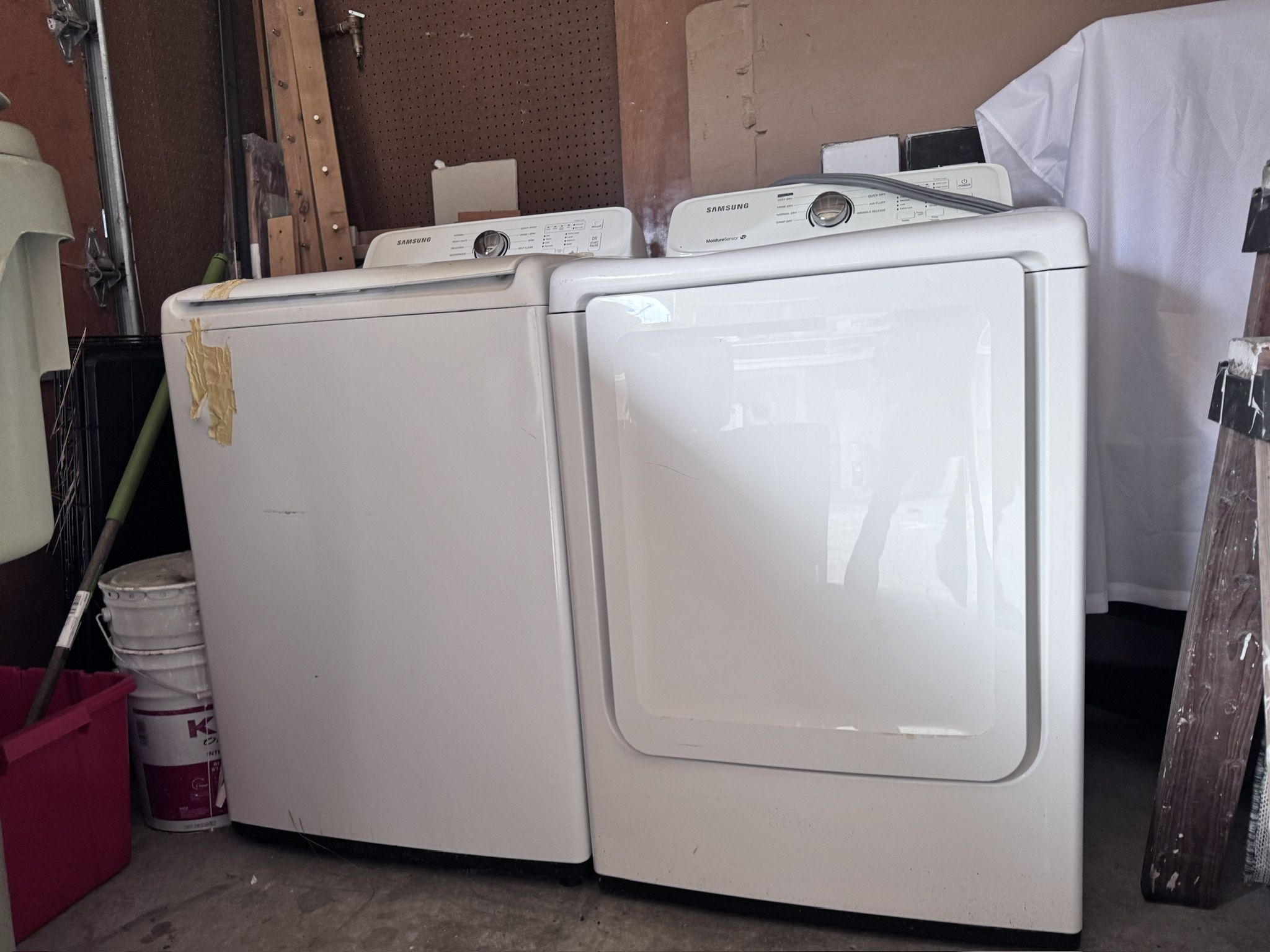 Free Samsung Washer and Dryer - 2016 I’m helping a client who moved out-of-state sell their washer and dryer. Both work great but have been stored in the garage for the last year. Cosmetically, the washer has tape residue but can easily be removed, and somehow the top of the dryer got dented but they both are in excellent working condition. Buyer must pick, delivery is not available by end of day Monday. Dryer: Model No. DV40J3000EW/A2 Serial No. 0AHV5BCH200215V Washer: Model No. WA40J3000AW/A2 Serial No. 0DLC5AUH318733F