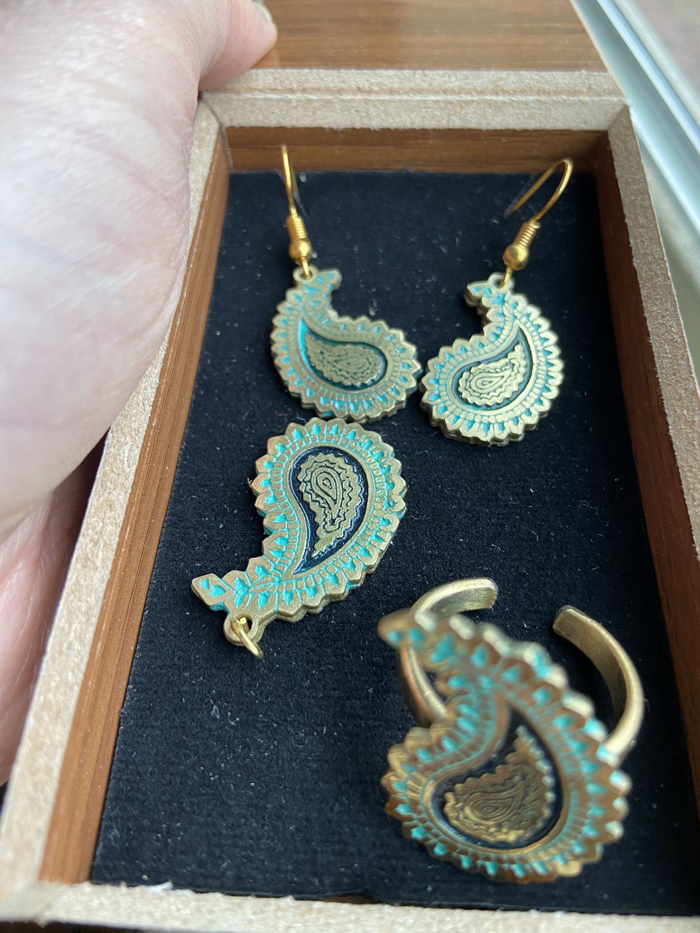 luxury copper set of earrings, a pendant and a ring jewelry for Women Advantages of copper jewelry: 1- reducing arthritis 2- reducing joint pain and inflammation 3- fat reduction 4- stress and headache reduction Material: combination of copper, zinc, tin, and nickle Stone: turquoise It remains cleaner than the only copper material. The bone is inserted into the wood for decoration. Pin Brooch Jewelry Jewelry embroidery Earrings Necklace Ring Bracelet Message me if you are interested in a bundle or you want to make an offer. You can clean them with lemon juice or tomato sauce. See less See less
