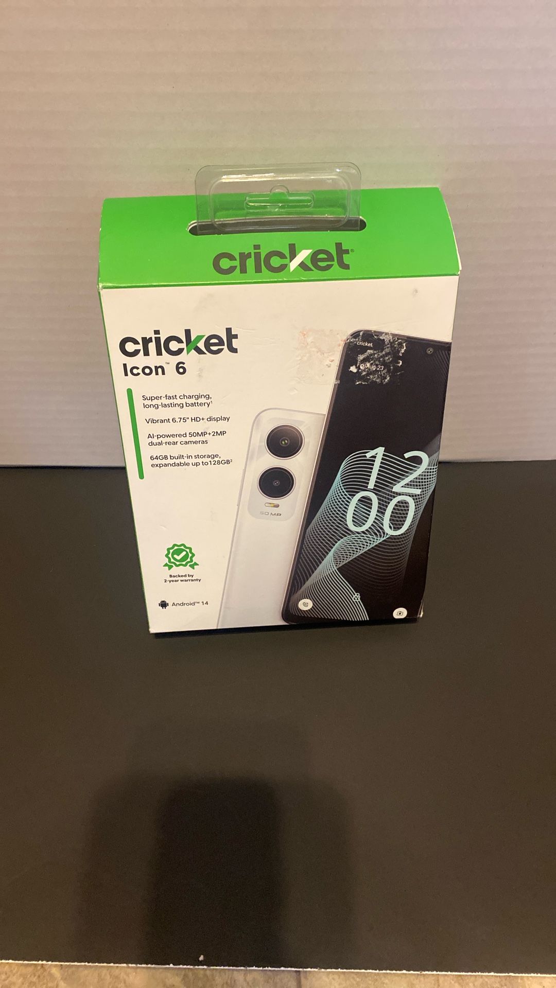 Cricket Icon 6 Vibrant 6.75” HD display AI -powered 50mp+2mp dual-rear camera 64GB built in storage, expandable to 128GB Android 14 os $40 obo