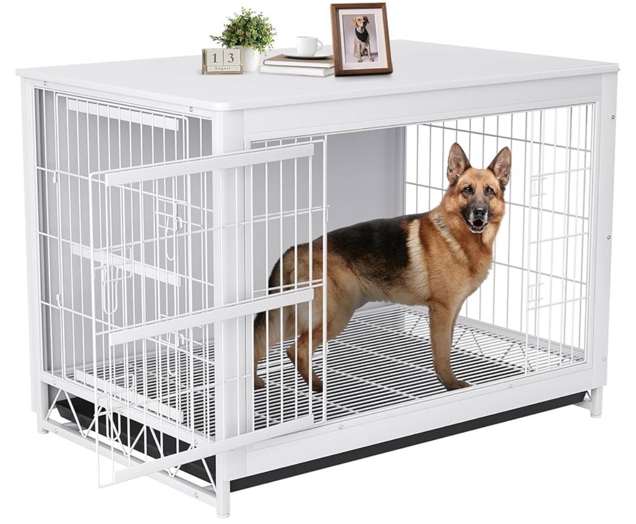 Dog Crate Furniture, 44.1" Wooden Side End Table, Modern Dog Kennel with Double Doors, Heavy-Duty Dog Cage w/Pull-Out Removable Tray, Indoor Medium/La