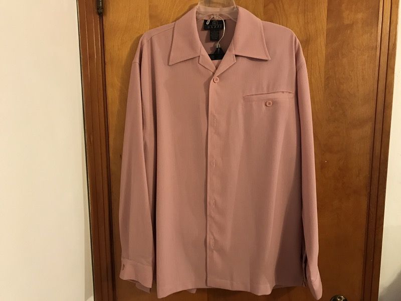 Champagne Pink Shirt size L; Pants 34W/32L Shoes size 9.5