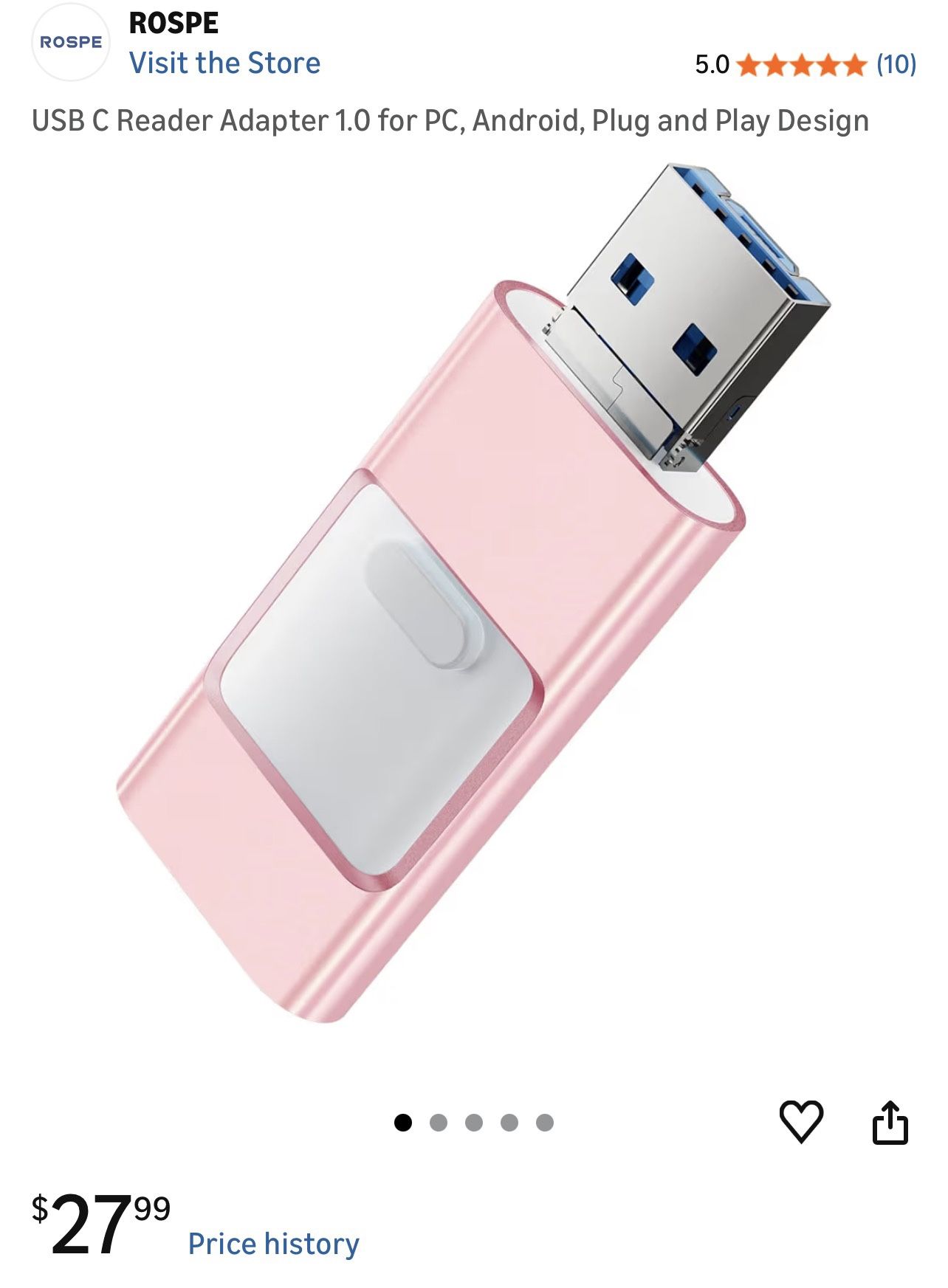 USB C Reader Adapter 1.0 for PC, Android, Plug and Play Design