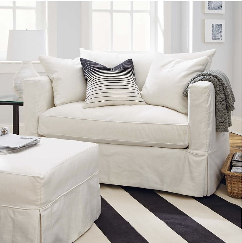 Crate + Barrel Willow Slip covered Chair and a Half + Ottoman