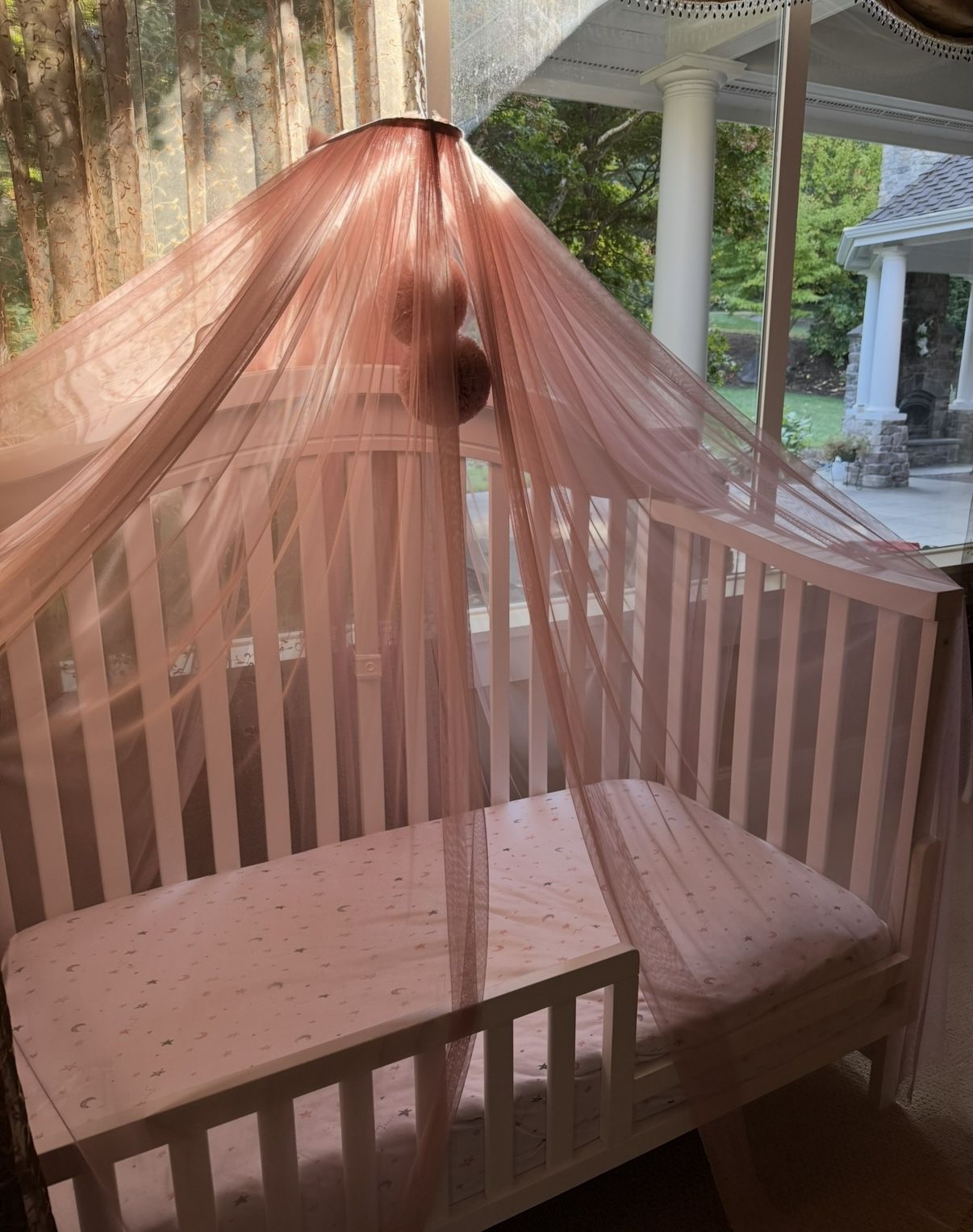 3-1 crib, with matters, toddler rail, bumper, mobile. Only crib was $850