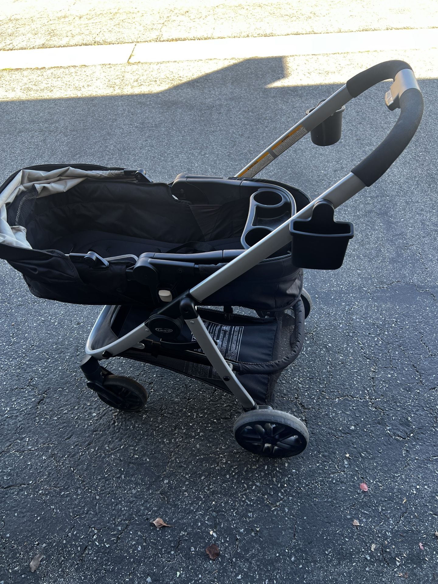 Comes with a basket on the bottom, basinet, and toddler seat. Car seat not included, but can attach to this stroller.