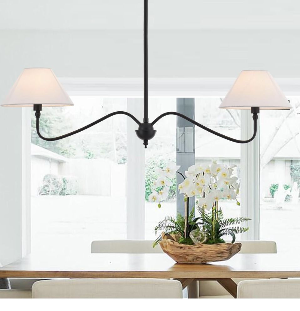 Modern Linear Chandelier for Kitchen Island, 2-Light Linear Light Fixture with Off-White Fabric Shade, Rustic Pendant Light for Dining Room.regular price $108.00
