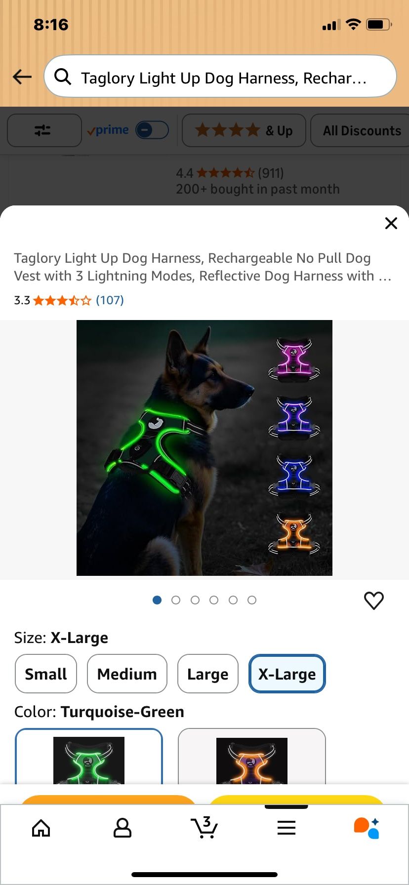 New Xl Purple Light Up Dog Harness And 30 Foot Black Leash