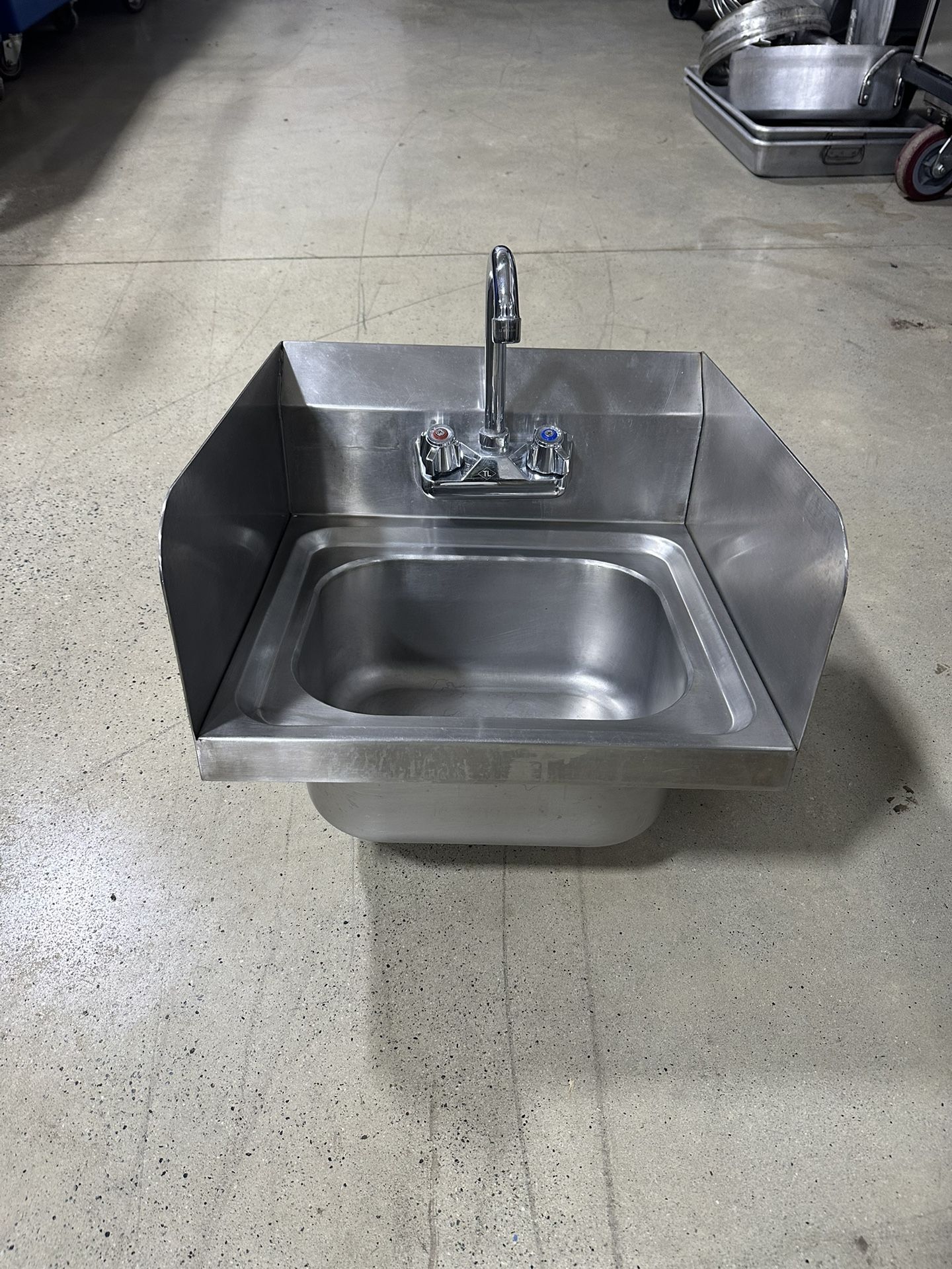 I have two NSF approved commercial hand sinks. Im not sure of the name brand of the sink basin. $125 each or both for $200. they are both identical and are in good working condition. They both come with a thermostatic mixing valve (Symmons Model 4-10). The sinks are around $300 each new and the the mixing valves are around $100 each new. 16” wide, 16” deep Basin is 6” deep Splash guard is 6” tall.
