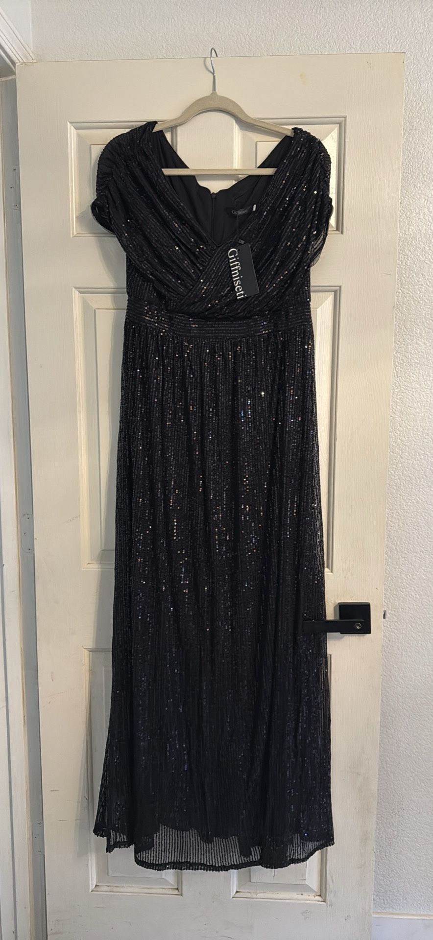 Giffniseti Women's V Neck Sequin Formal Maxi Dress A-Line Prom Evening Party Gowns Size XL Brand new