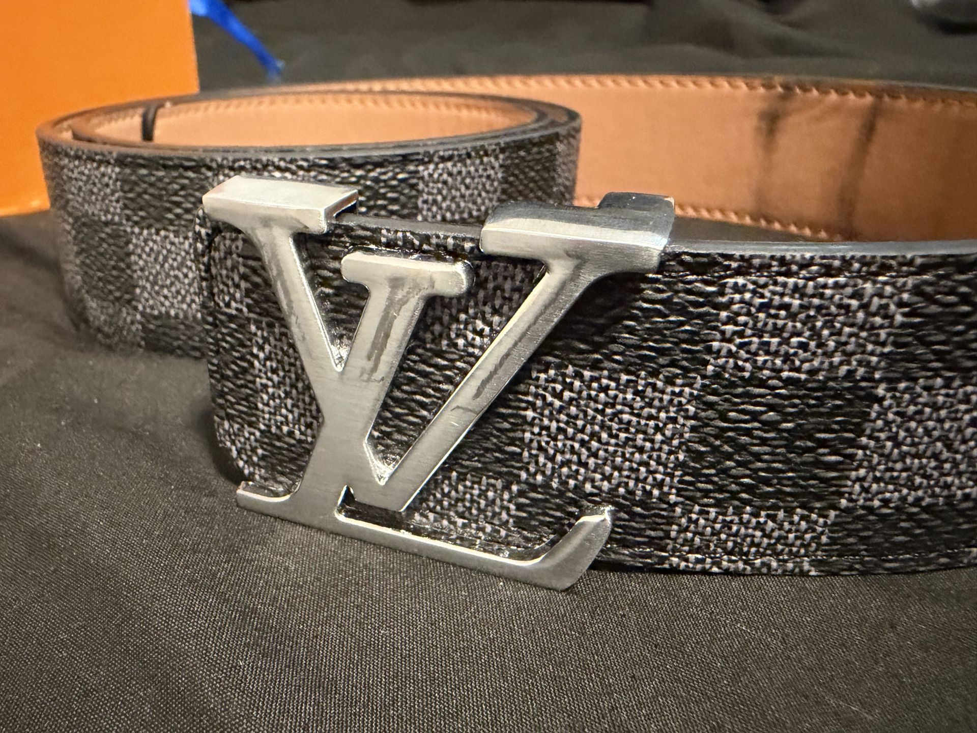 Black lv belt with a checkered pattern 44/1100Mm Final sale no refunds
