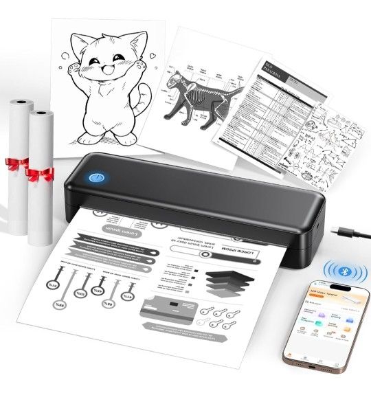 Portable Printer Wireless for Travel – Inkless Thermal Printer, Supports 8.5x11 Inch Thermal Paper, Bluetooth Compatible with iOS/Android/Laptop New