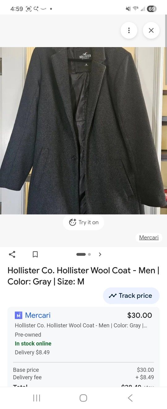 Hollister Co. Coat Mens Gray Médium Like New $20.00 Good Condition